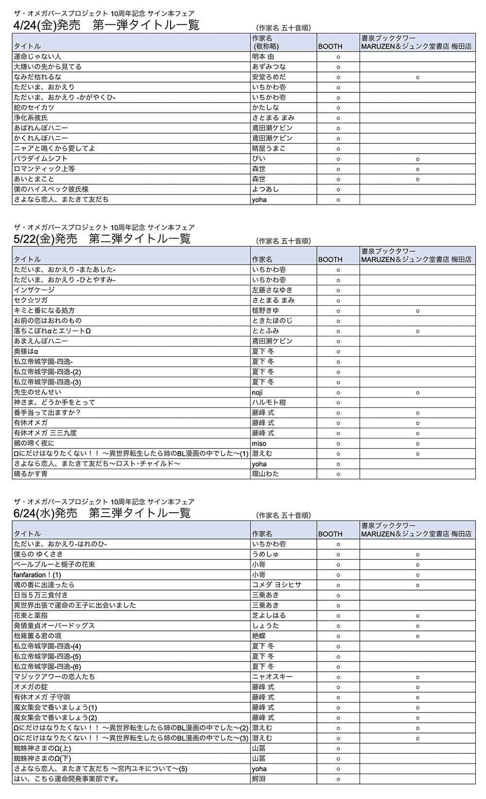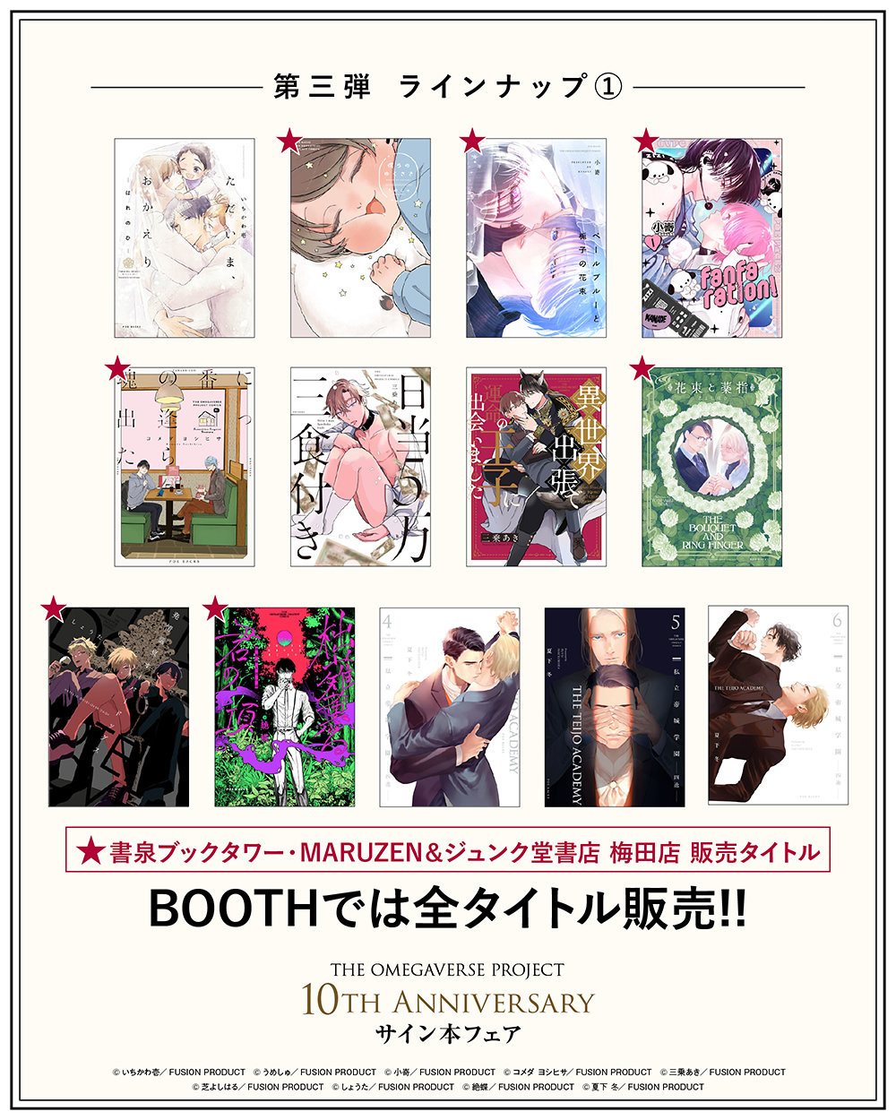 BOOTHでは全タイトル発売!! 書泉ブックタワー、MARUZEN&ジュンク堂書店 梅田店では 一部のタイトルのみの発売となりますのでご注意ください。