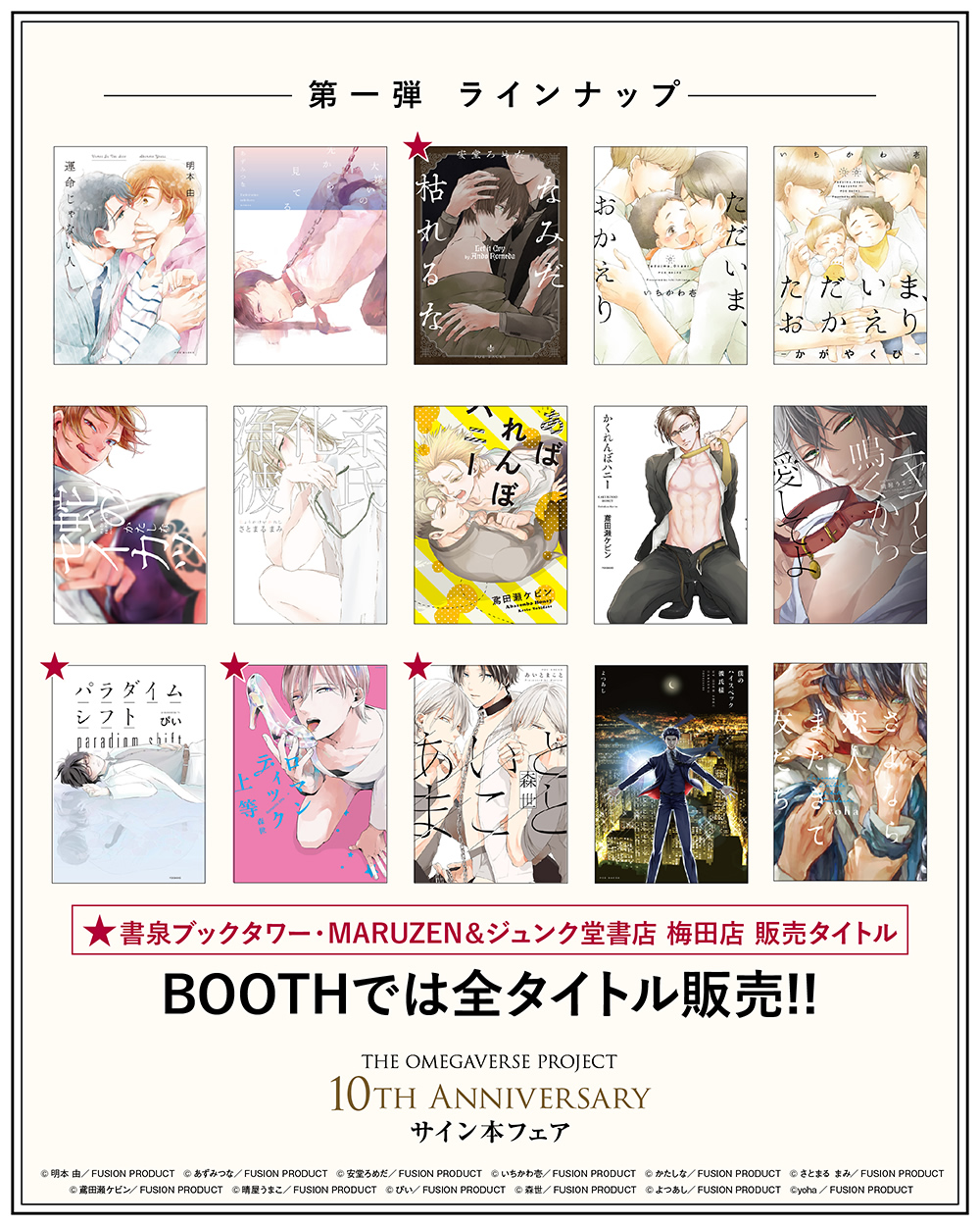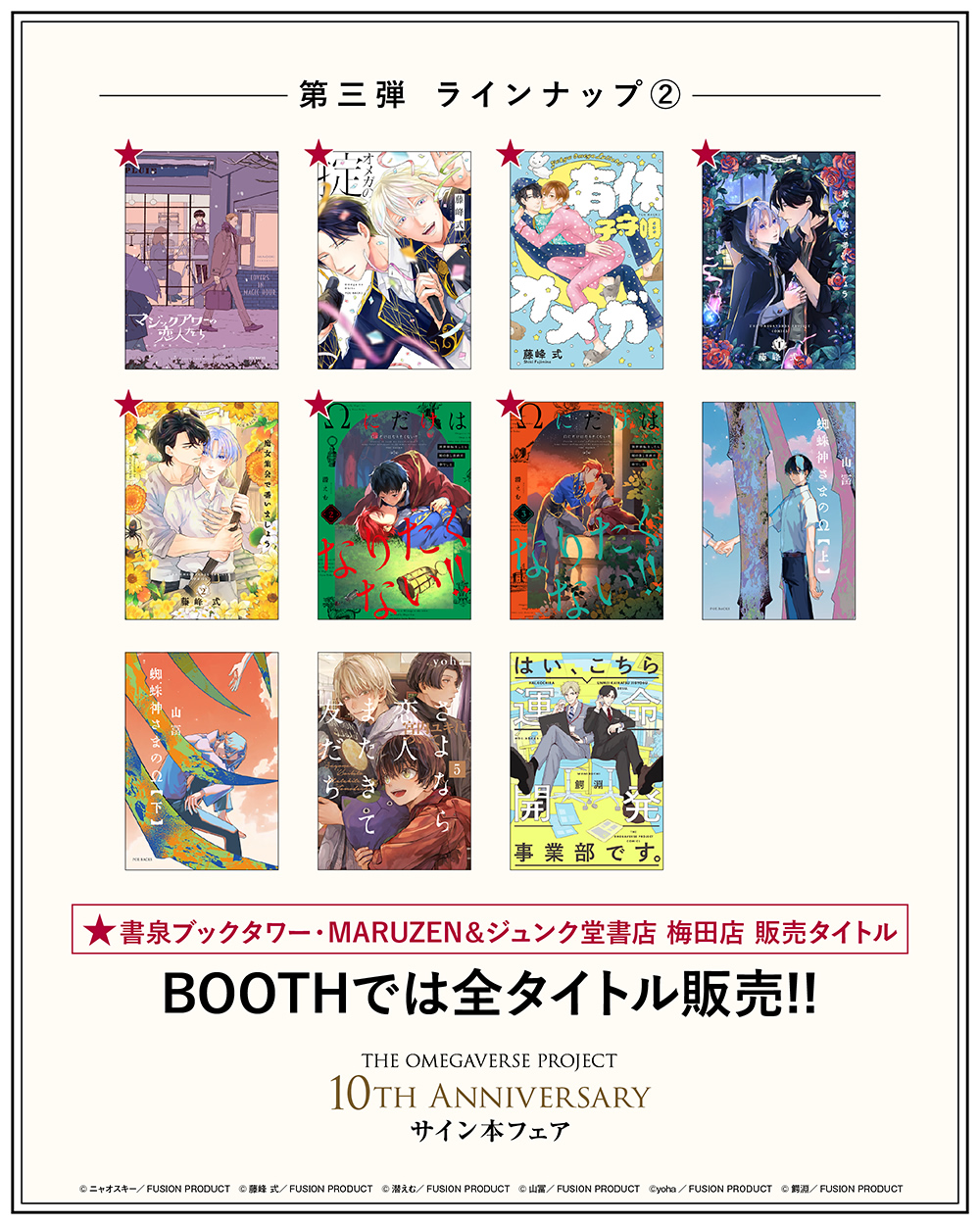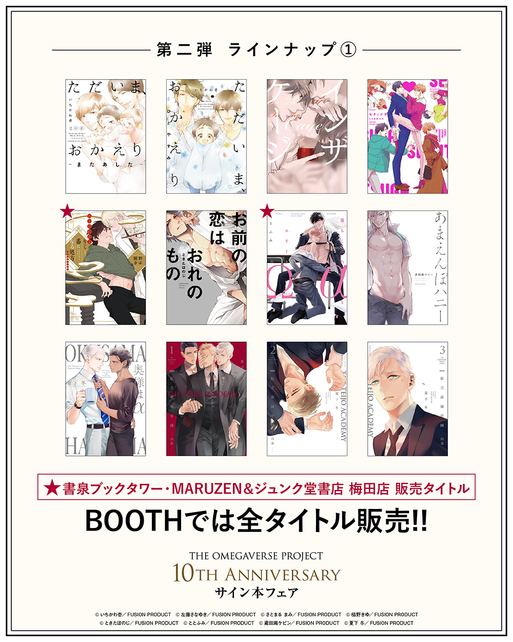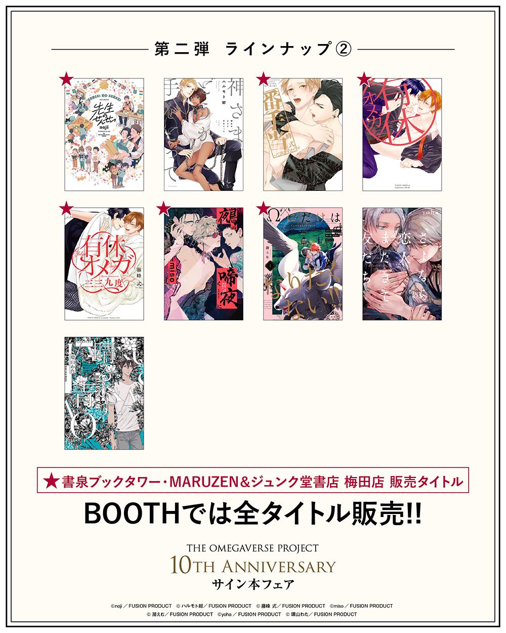 BOOTHでは全タイトル発売!! 書泉ブックタワー、MARUZEN&ジュンク堂書店 梅田店では 一部のタイトルのみの発売となりますのでご注意ください。